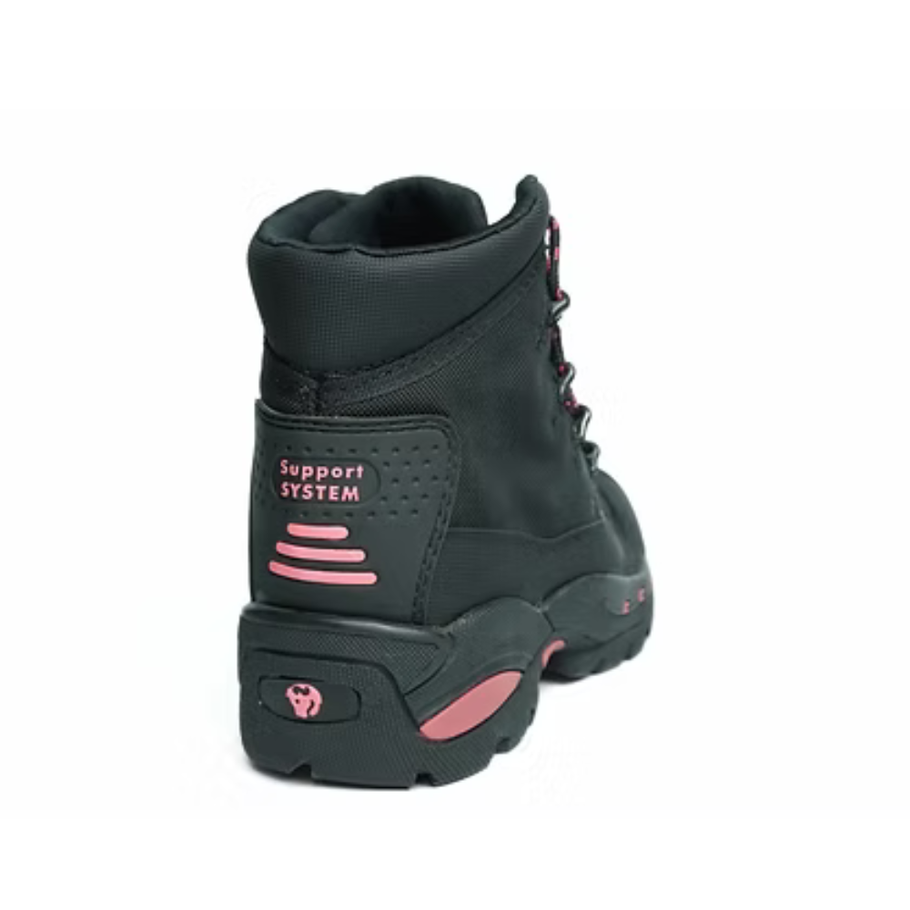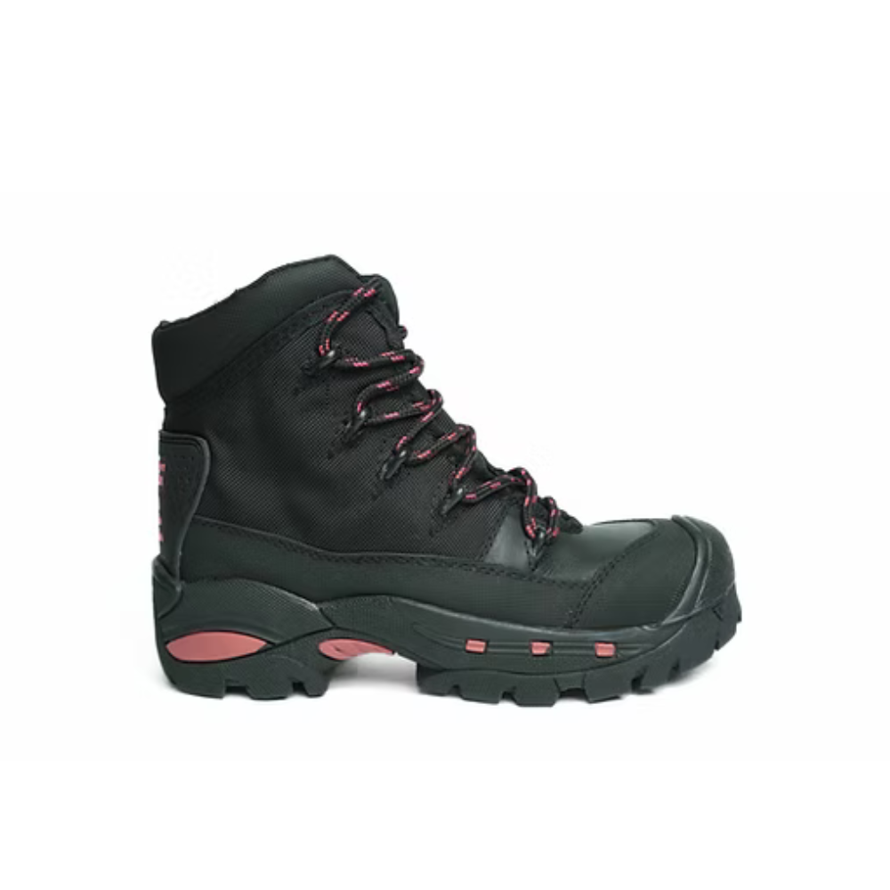 Botín deportivo de seguridad para dama fabricado en lona balística con refuerzos en la parte frontal en cuero semi graso y de caucho en los laterales y la punta. Brinda buena resistencia a la abrasión y una adecuada repelencia al agua. Incorpora punta de seguridad 200J fabricada en mezclas de polímeros. Suela cementada en caucho con adición de acrilo-nitrilo. Cumple ensayos de aislación eléctrica según ASTM2413-EH. Resistencia a hidrocarburos y ácidos álcalis, excelente resistencia a la abrasión y estable a temperaturas de 180°. Incluye plantilla extraíble PU Confort.