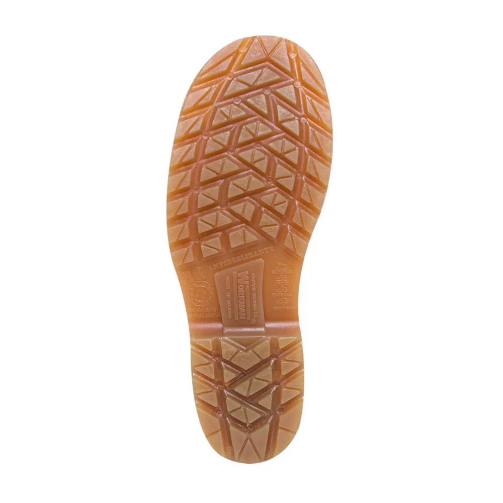 Las botas de construcción Workman Safety WaterProof C/P S/P PU son un tipo de bota hecha en PVC y certificada por Icontec con sello de producto de calidad bajo los requerimientos de la norma ASTM F2413-18. Estas botas para la construcción cuentan con puntera en acero, que cumple con la resistencia del impacto de 101,7 J. resiste fuerza de compresión de 11.121N o 2.500lbf de acuerdo a la norma ASTM F2413-18. Son botas de construcción para hombres y para mujer con suela de labrado profundo para mejor agarre y mayor facilidad de remoción de residuos y resistencia al deslizamiento, con resultado de 0,72 en seco y 0,56 en húmedo según norma ASTM F1677-05. Tienen un forro interno 100 % en poliéster tejido rizo, un puente estabilizador para el pie que brinda confort al caminar. Es de color negra con suela crepé.